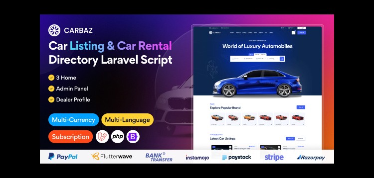 Carbaz - Car listing & Car Rental Directory Laravel Script