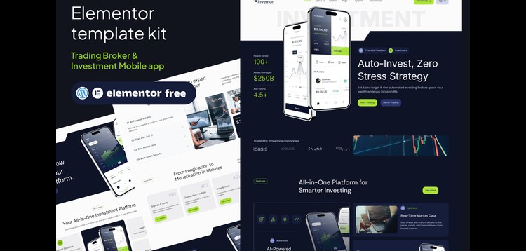 Invemon - Mobile Apps Trading & Investment Elementor Template kit
