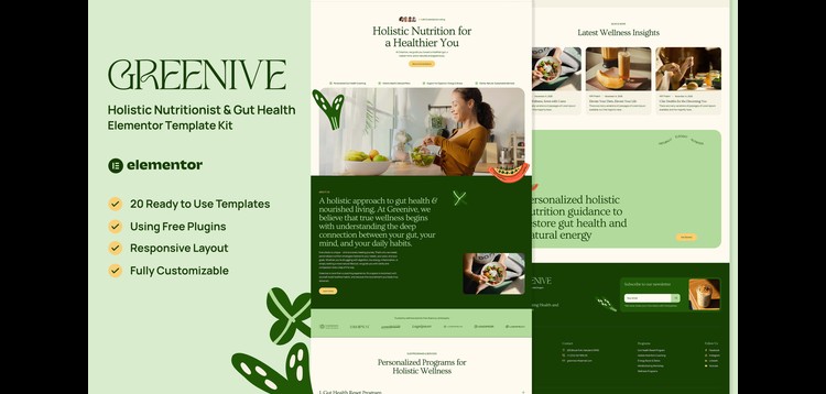 Greenive - Holistic Nutritionist & Gut Health Elementor Template Kit