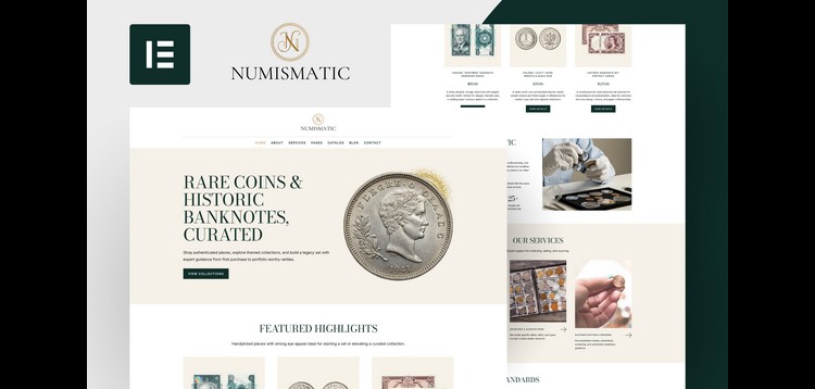 Numismatic - Rare Coins & Banknotes Elementor Template Kit