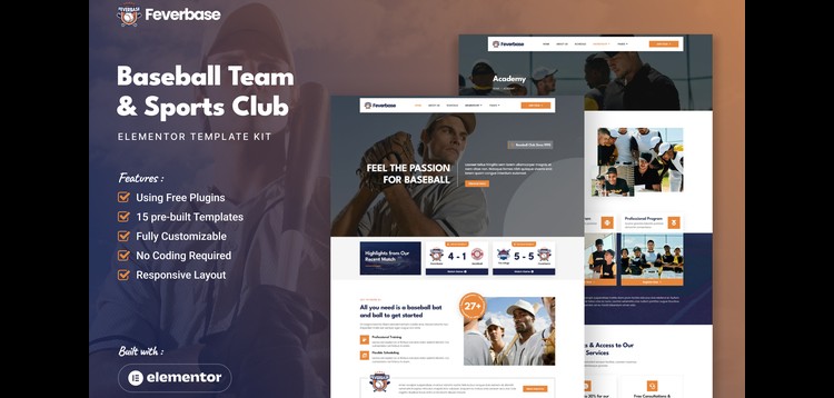 Feverbase - Baseball Team & Sports Club Elementor Template Kit