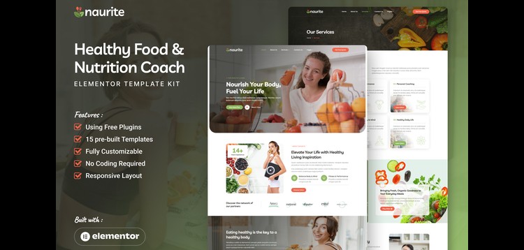 Naurite - Healthy Food & Nutrition Coach Elementor Template Kit