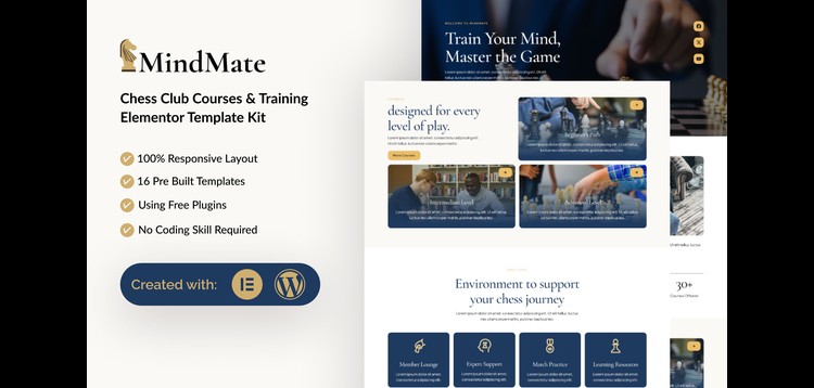 Mindmate - Chess Club Course & Training Elementor Template Kits