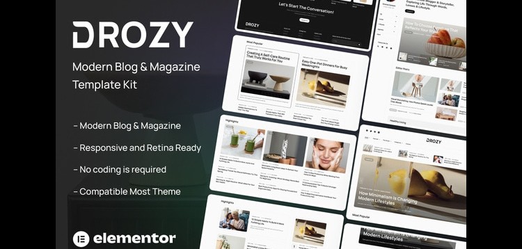 Drozy - Modern Blog & Magazine Elementor Pro Template Kit